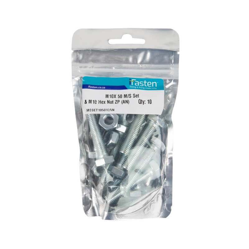 BOLT 50MM & NUT 10MM MILD STEEL ZINC PLATED Q:10 IFASTEN
