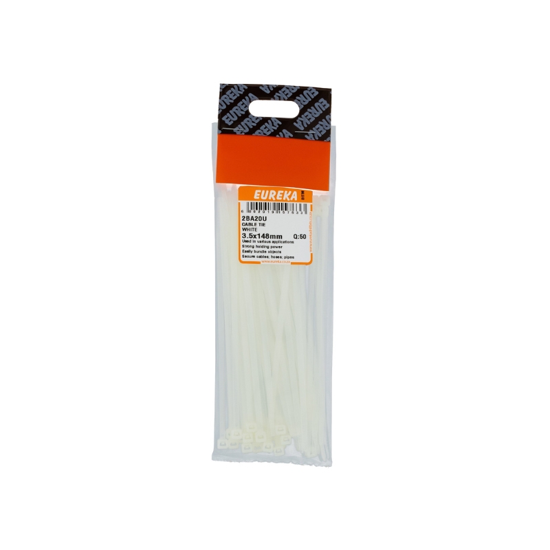CABLE TIE WHITE 3.5X148MM Q:50 EUREKA