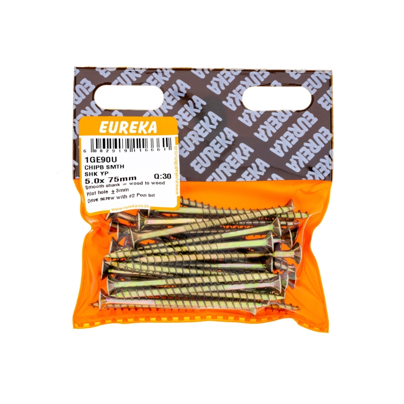 CHIPBOARD SCREW SMOOTH SHANK YELLOW PASSIVATED 5.0X75MM Q:30 EUREKA