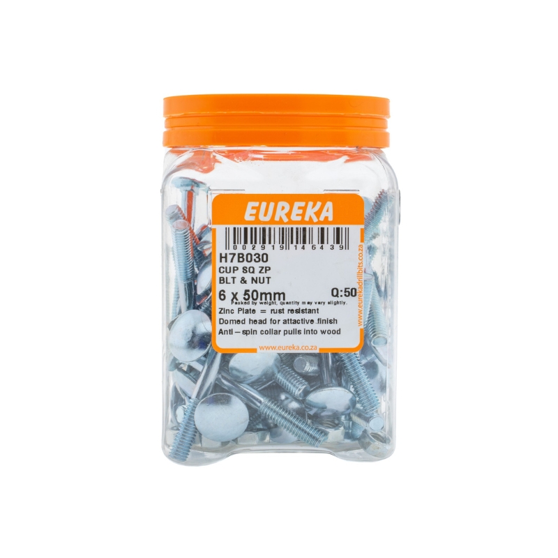 CUP SQUARE ZINC PLATED BOLT & NUT 6X50MM Q:50 EUREKA