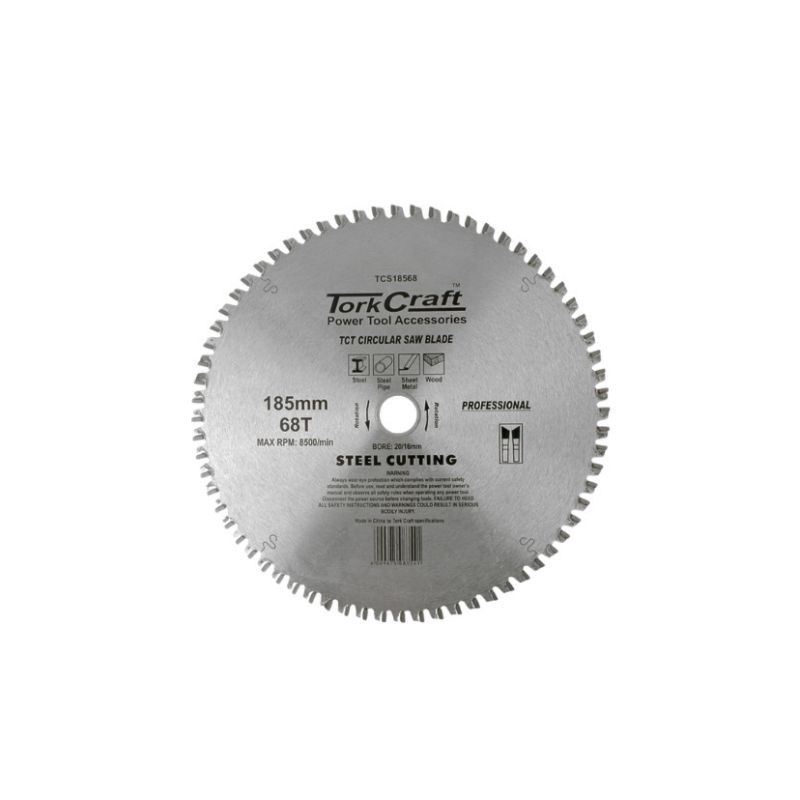 CUTTING BLADE TUNGSTEN CARBIDE TIPPED FOR STEEL CUTTING 185MMX68 TEETH 20/16 TORK CRAFT