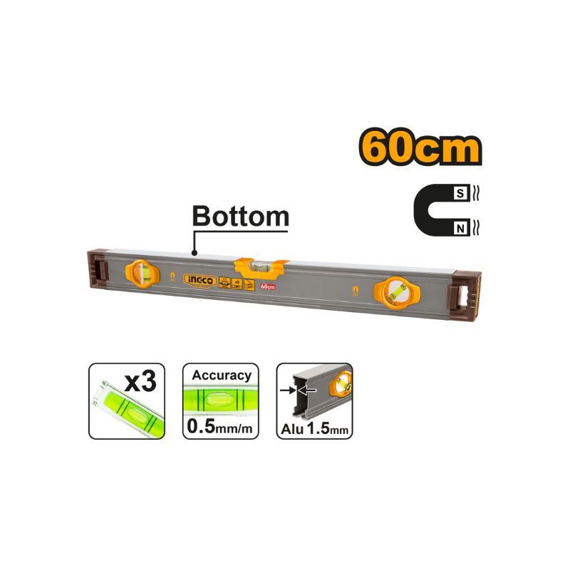 LEVEL ALUMINIUM WITH MAGNET 60CM INGCO