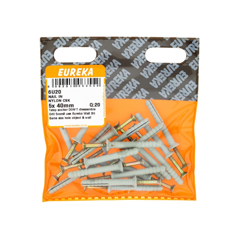 NAIL IN NYLON COUNTERSUNK 5X40MM Q:20 EUREKA