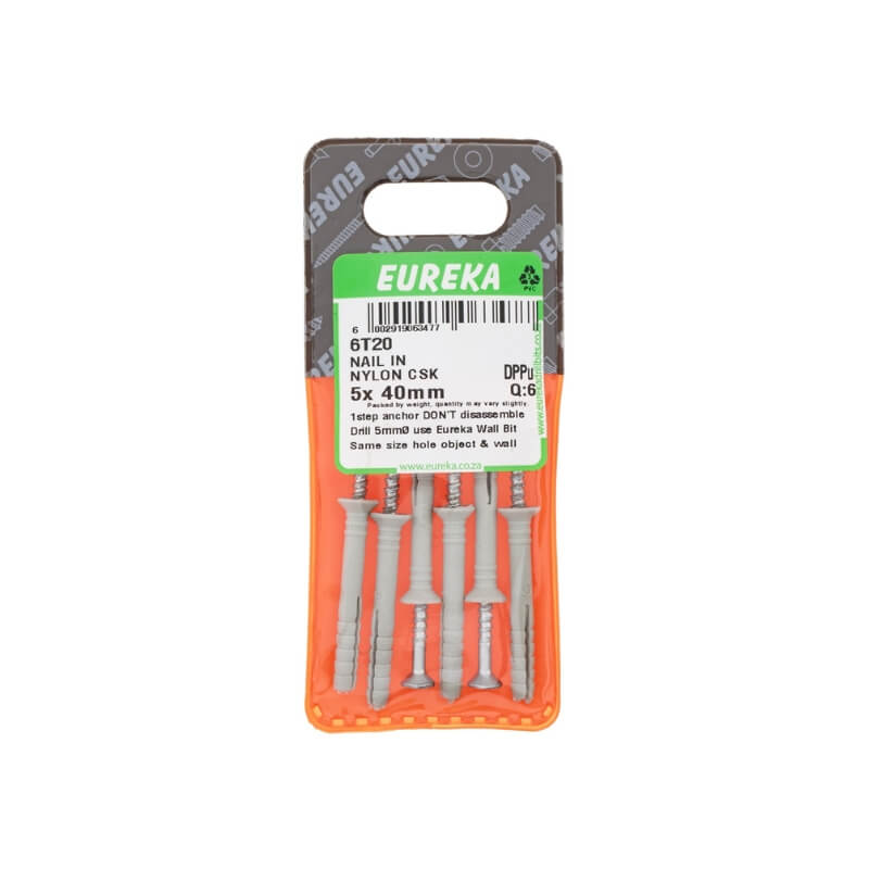 NAIL IN NYLON COUNTERSUNK 5X40MM Q:6 EUREKA
