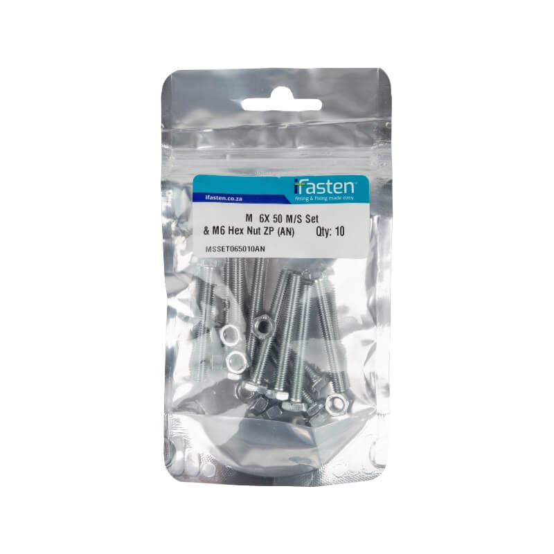 M 6X 50 M/S SET & NUT ZP QTY: 10