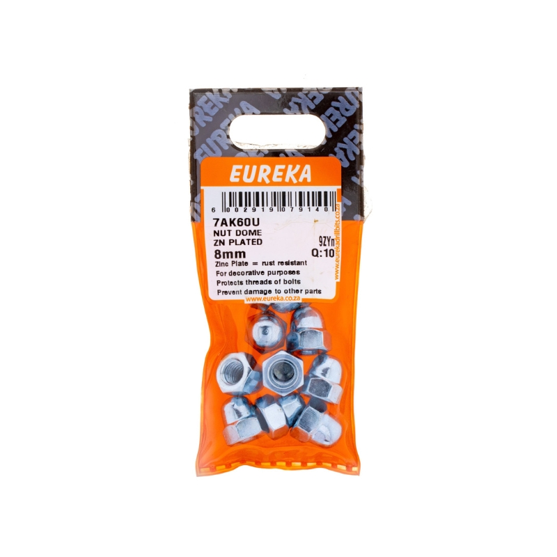 NUT DOME ZINC PLATED 8MM Q:10 EUREKA