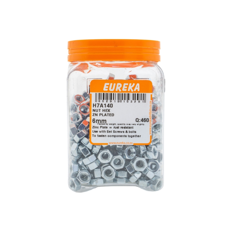 NUT HEX ZINC PLATED 6MM Q:460 EUREKA