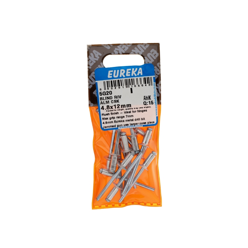 RIVET BLIND ALUMINIUM COUNTERSUNK 4.8X12MM Q:15 EUREKA