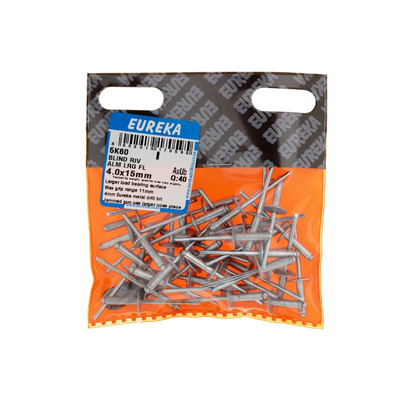 RIVET BLIND ALUMINIUM LARGE FLANGE 4.0X15MM Q:40 EUREKA