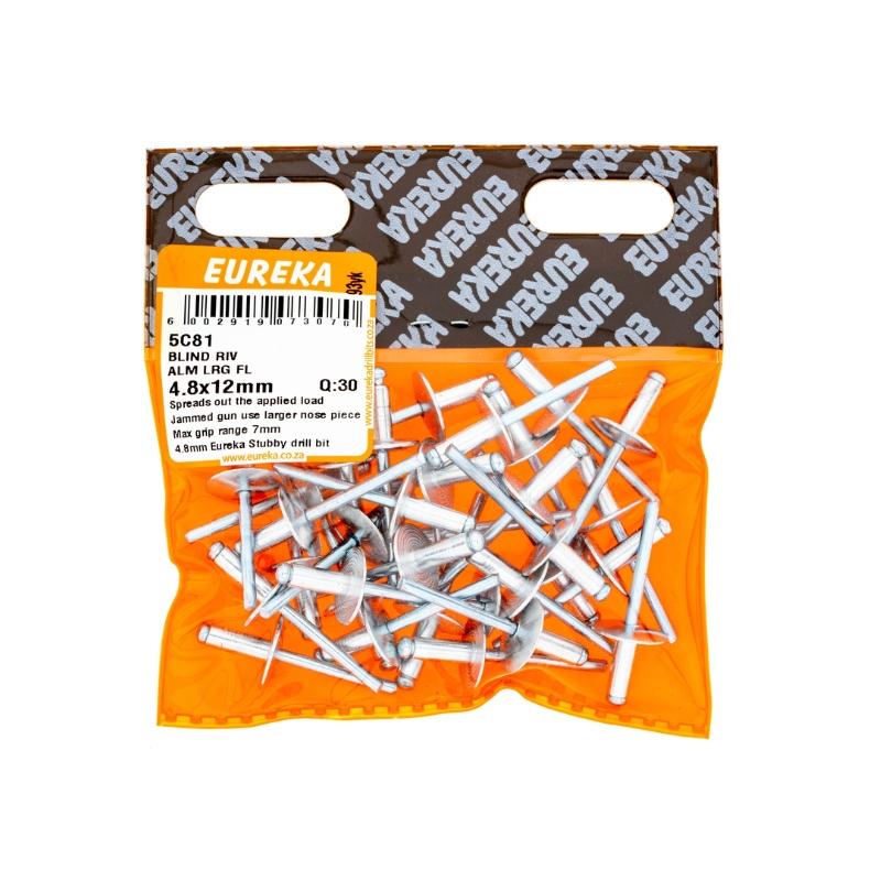 RIVET BLIND ALUMINIUM LARGE FLANGE 4.8X12MM Q:30 EUREKA