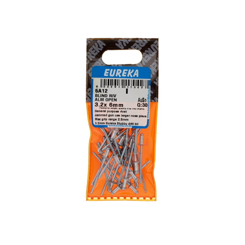RIVET BLIND ALUMINIUM OPEN 3.2X6MM Q:30 EUREKA