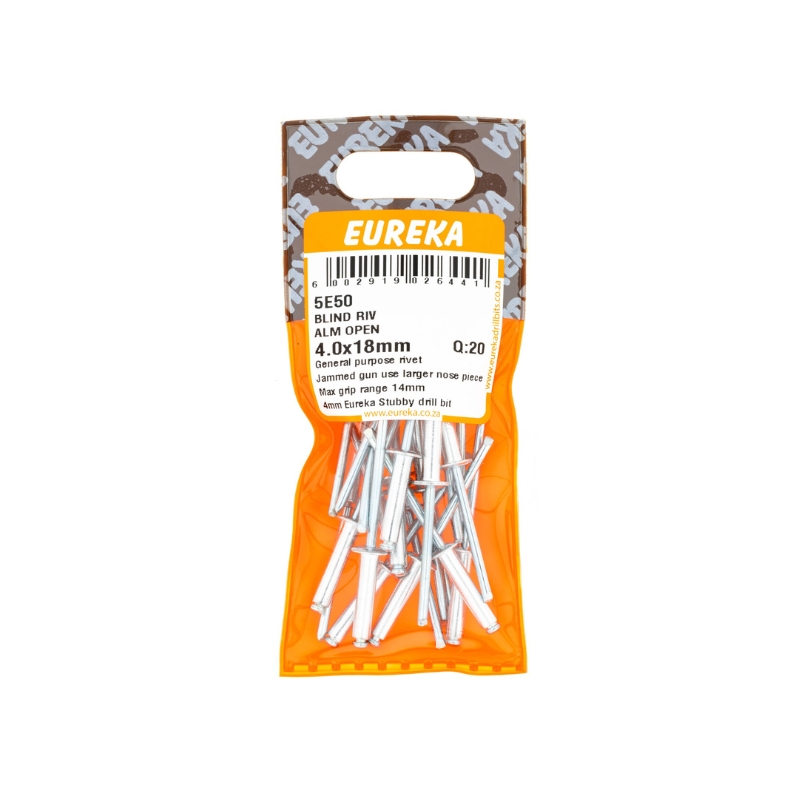 RIVET BLIND ALUMINIUM OPEN 4.0X18MM Q:20 EUREKA