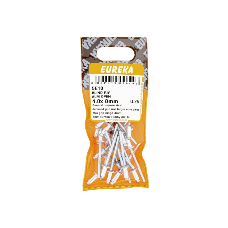 RIVET BLIND ALUMINIUM OPEN 4.0X8MM Q:25 EUREKA