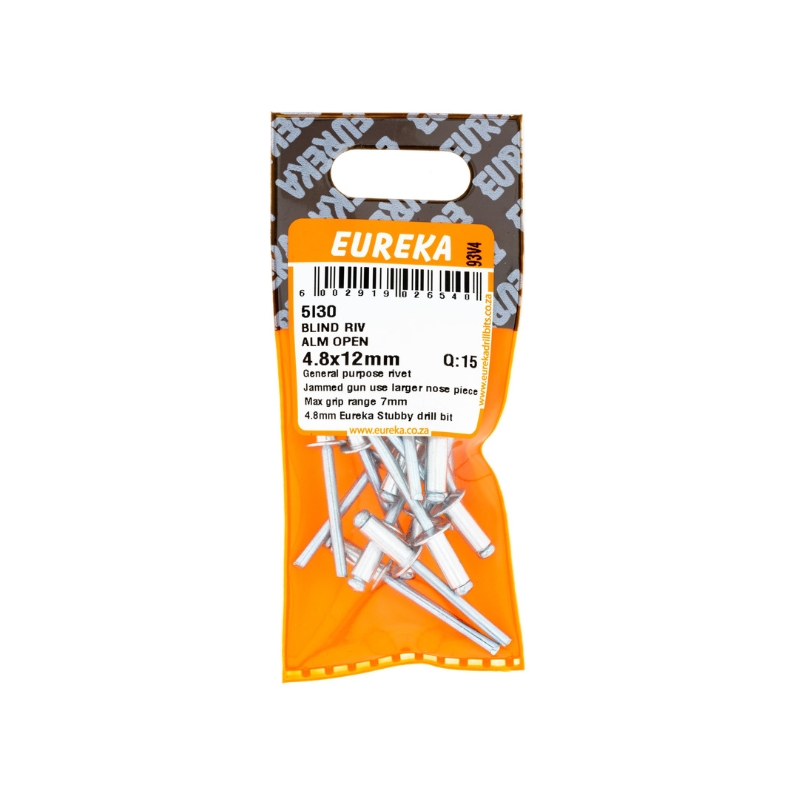 RIVET BLIND ALUMINIUM OPEN 4.8X12MM Q:15 EUREKA