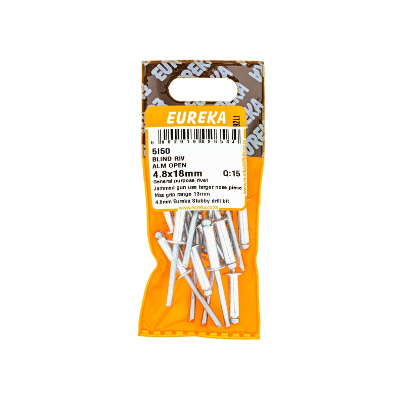 RIVET BLIND ALUMINIUM OPEN 4.8X18MM Q:15 EUREKA