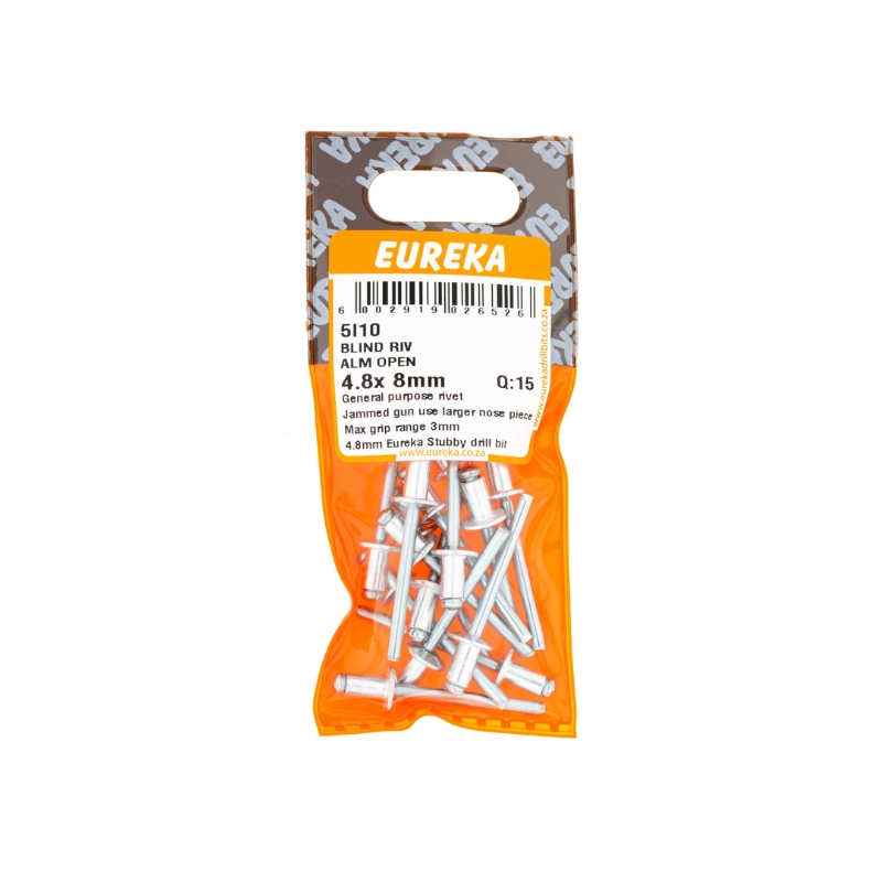 RIVET BLIND ALUMINIUM OPEN 4.8X8MM Q:15 EUREKA