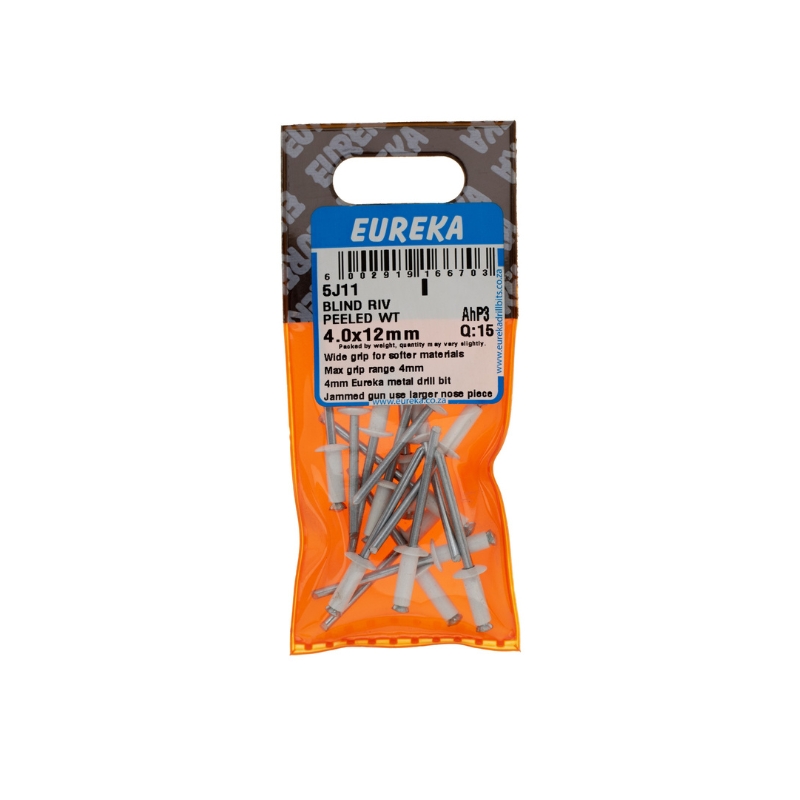 RIVET BLIND ALUMINIUM PEELED WHITE 4.0X12MM Q:16 EUREKA