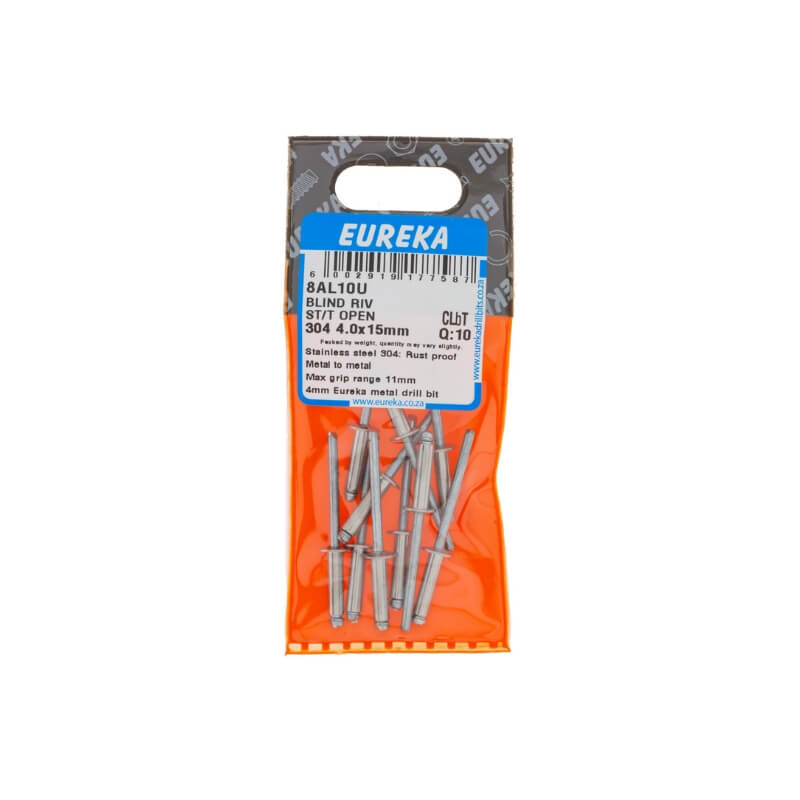 RIVET BLIND STAINLESS STEEL OPEN 304 4.0X15MM Q:10 EUREKA