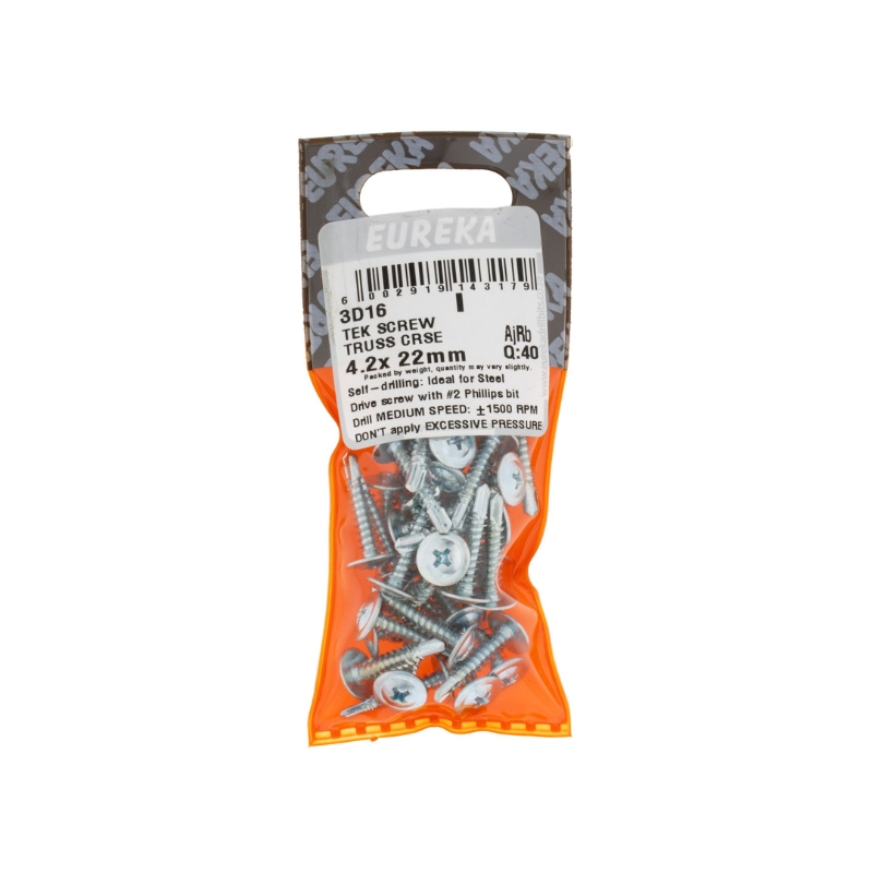 ROOF SCREW WAFER HEAD STEEL CLASS 3 ZINC PLATED 4.2X22MM Q:40 EUREKA
