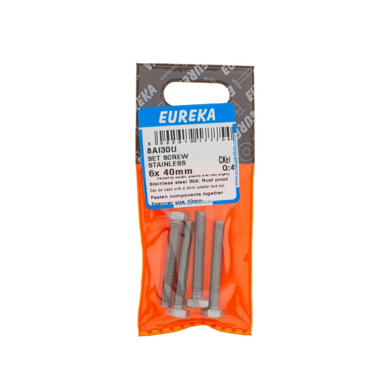 SET SCREW STAINLESS STEEL 6X40MM Q:4 EUREKA