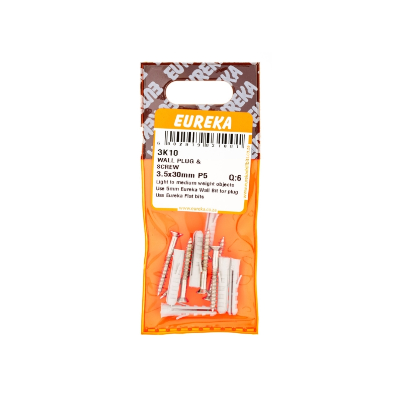 WALL SCREW & PLUG 3.5X30MM (PLUG 5MM) Q:6 EUREKA