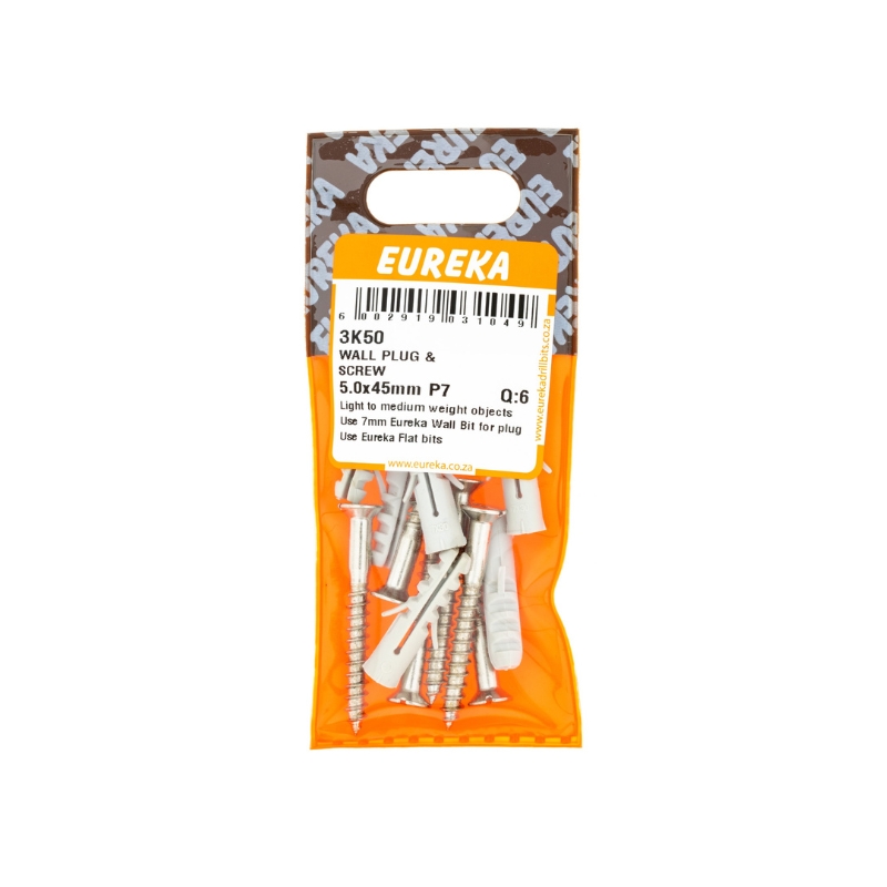 WALL SCREW & PLUG 5.0X45MM (PLUG 7MM) Q:6 EUREKA
