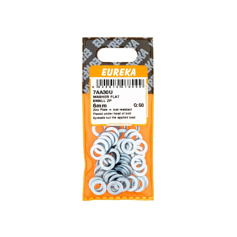 WASHER FLAT SMALL ZINC PLATED 6MM Q:50 EUREKA