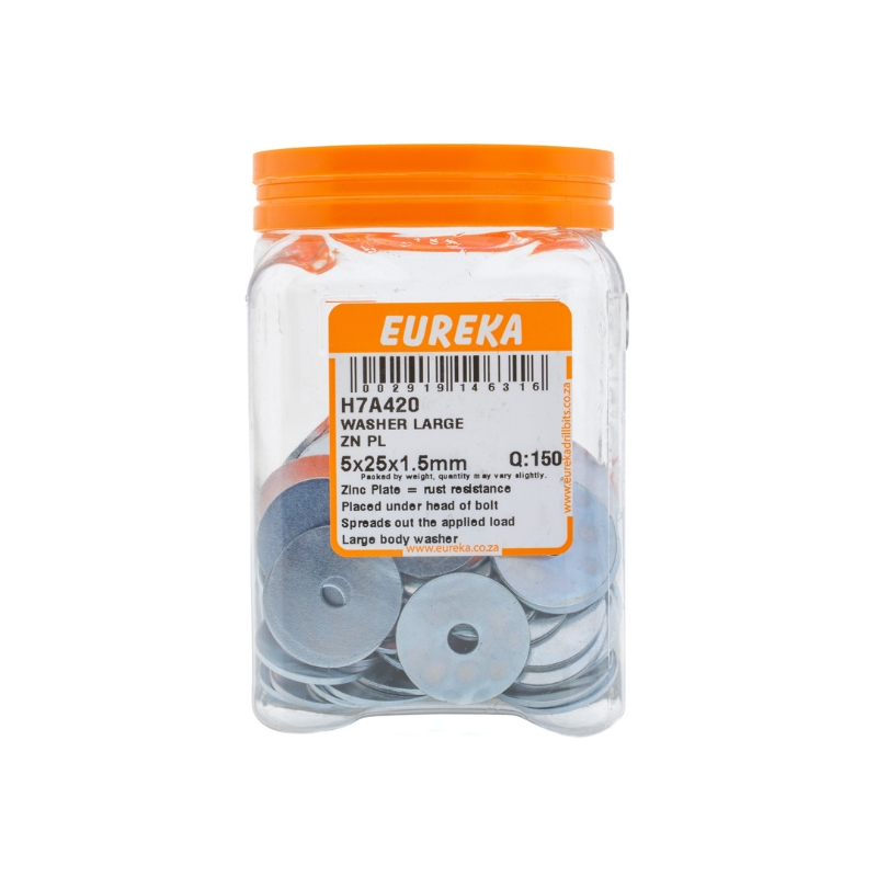 WASHER LARGE ZINC PLATED 5X25X1.5MM Q:150 EUREKA