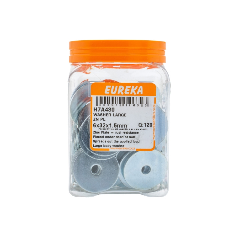 WASHER LARGE ZINC PLATED 6X32X1.5MM Q:120 EUREKA